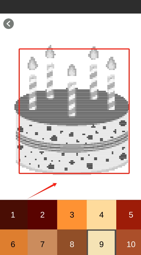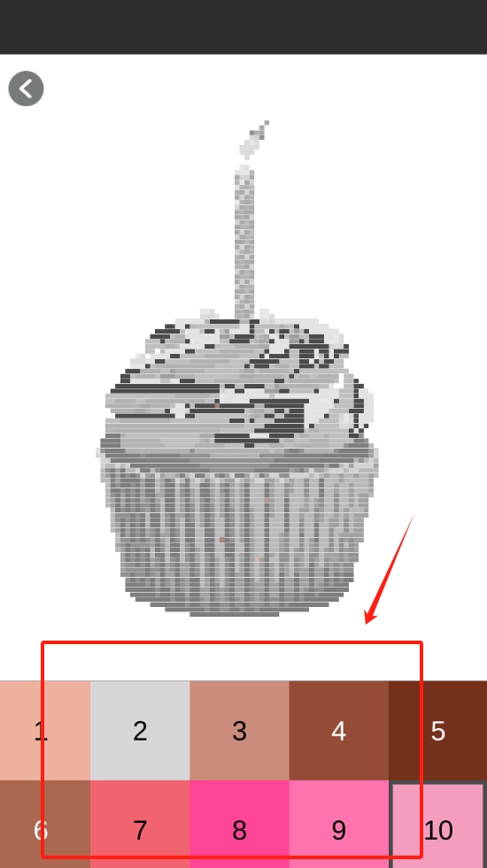 2、为像素蛋糕填充颜色,下方色块需选择与数字对应的颜色,操作可参考箭头提示。
