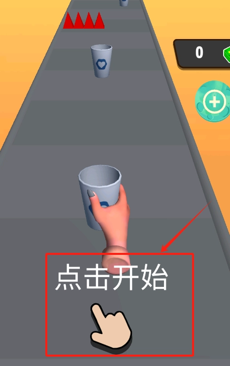 2、手握深色液体的杯子在跑道移动,看准旁边障碍物位置,用手指左右拖动杯子避开障碍物就行。