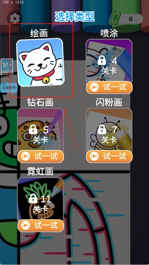 1、进入游戏后,可选择图案模式或自由绘画模式,挑选心仪的主题,开启你的创作之旅。