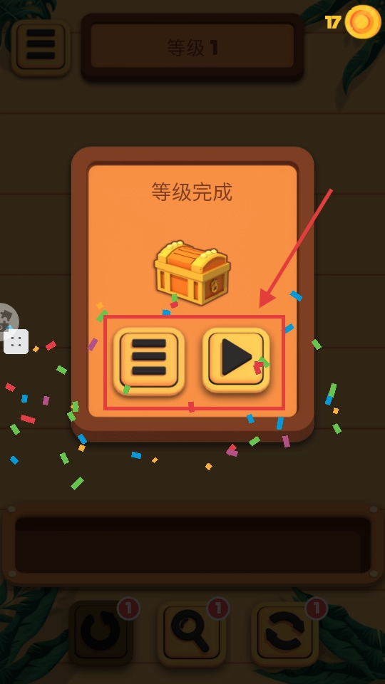 关卡完成后,可点击播放按钮进入下一关,也能通过菜单按钮查看关卡列表,继续挑战还能获得奖励。