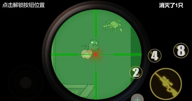 2、瞧见绿色准星和数字428没。用手指滑动屏幕调整方向,瞄准那些偷粮的小老鼠。