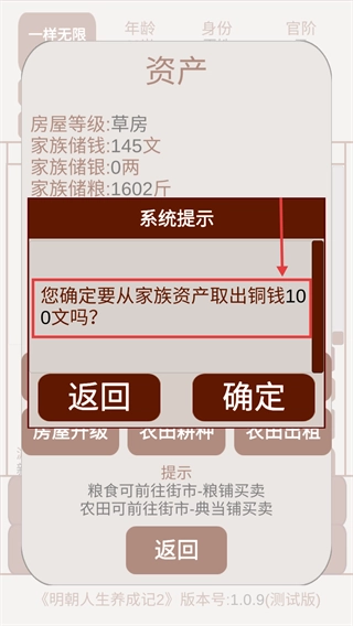 当系统提示提取铜钱时,请务必谨慎点击【确定】按钮,以防因误操作对家族资产储备造成影响。