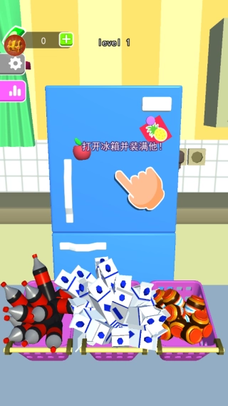 您可以通过拖拽的方式把食材移动到冰箱里面,还能借助旋转手势来调整物品的方向,以此找到最合适的放置角度。
