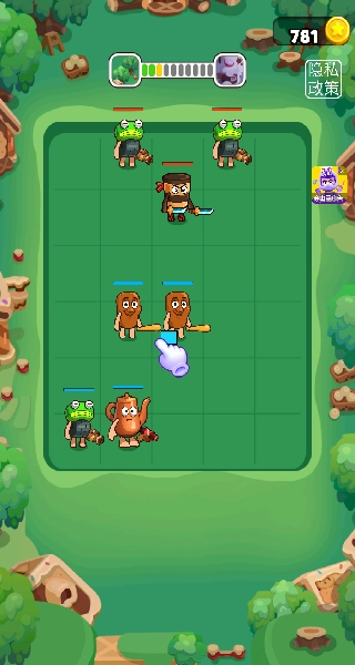 操控初始角色木棍人和轮胎青蛙,通过合成相同角色来完成进化,增强战斗能力。