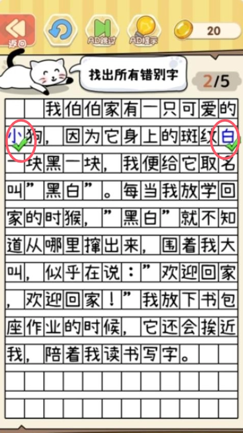 2、玩家可以通过点击文字,标注出错别字,完成任务。