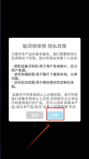1、首先,并阅读同意隐私政策,点击“同意”按钮以继续游戏。