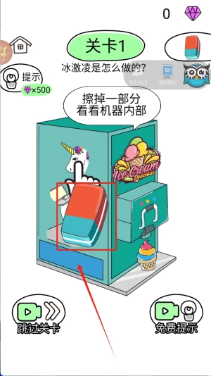 3、然后,在关卡中,按照提示擦掉一部分机器,查看机器内部结构,完成关卡挑战。