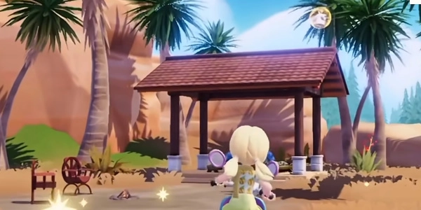 玩家打开地图来到图中所示的温泉山庄附近,在凉亭的屋顶上可以找到第一个泡泡服装。