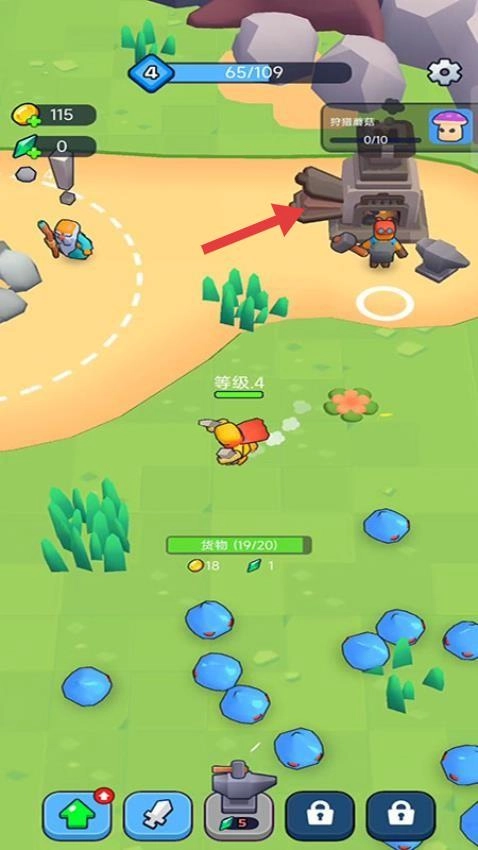 2、提升等级后,使用武器攻击紫色蘑菇,完成“挖掘蘑菇”任务,持续收集资源强化自身。