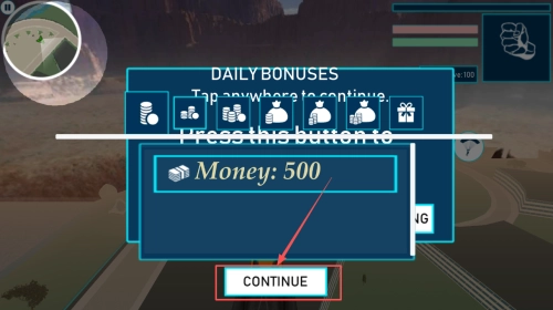3、领取奖励:点击“CONTINUE”按钮,领取每日奖励。
