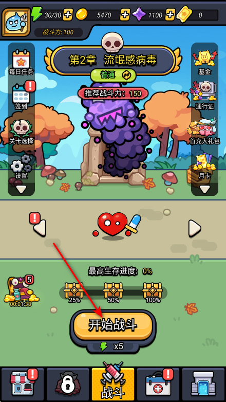 1.进入游戏,点击开始战斗