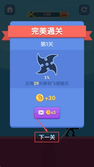 进入下一关:在完美通关的界面中,点击“下一关”按钮,即可继续进行游戏。