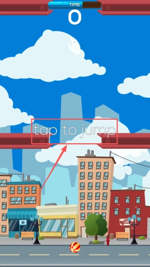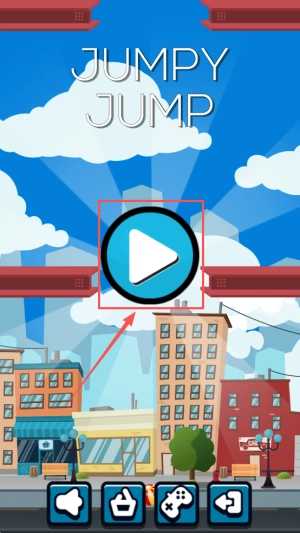 首先,启动游戏后会看到“JUMPY JUMP”的标题界面,此时轻点屏幕就能让角色向上跳跃,从而正式进入游戏关卡。