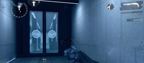 拿到手才发觉左轮的威力比步枪大得多,一枪一个,弹无虚发,真是畅快,清理完一层的士兵后便乘电梯上行。