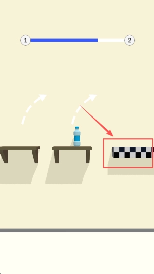 操控瓶子跳跃的方法:通过手指来调节跳跃的力度和距离,控制瓶子从所在的物体上跳出,保证跳跃轨迹准确无误,防止瓶子掉落。