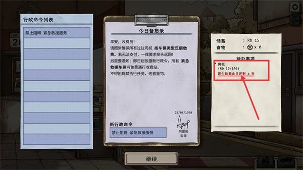 1998收费员的故事汉化版是一款融合边境生存与人性博弈元素的剧情模拟游戏,故事设定在危机四伏的虚构国家阿卡迪亚。玩家将扮演怀有身孕的收费员黛薇,在跨境收费站的日常工作里,不仅要处理跨境旅客的身份谜团与物资交易,还需缓解家庭失业带来的生存压力。政策的变化与社会的潜在矛盾,让每一次选择都充满不确定性。游戏整体体验既体现了边境职业的独特性,又蕴含着时代困境的深刻感。