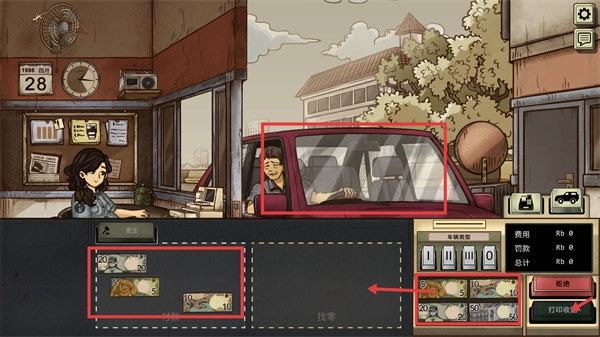 识别红色车辆的类型,完成付款流程后点击【打印收据】,精准收取相关费用以积累资金。