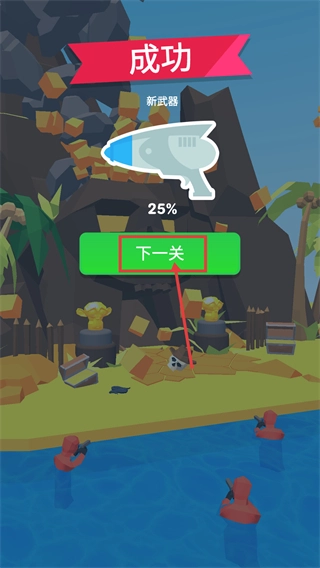 通关后将获得【新武器-25%】的进度奖励,点击【下一关】按钮就能开启后续关卡的挑战。