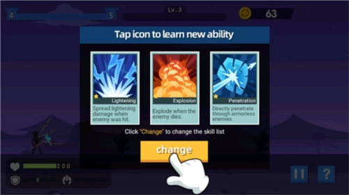 通过持续挑战关卡、击败敌人,提升火柴人战士的等级与能力,让角色变得更强大,以便你更好地操作。