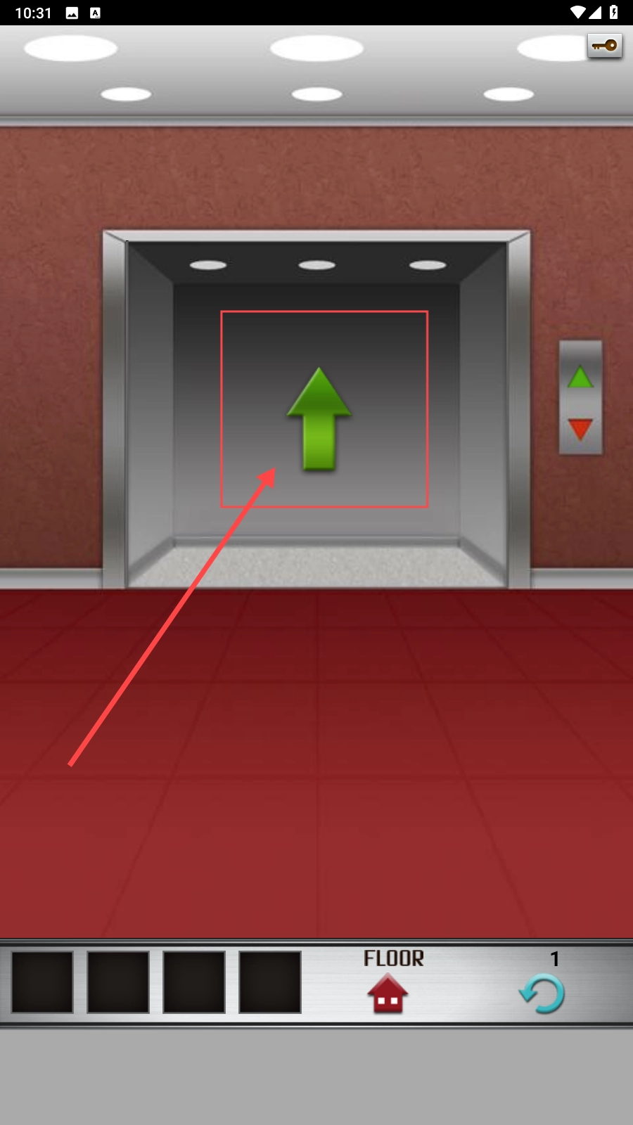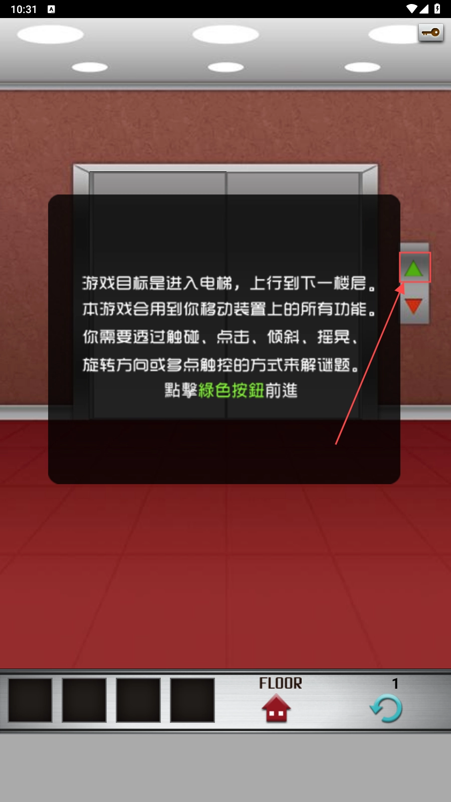 打开电梯后会出现一个绿色的箭头点击绿色箭头。