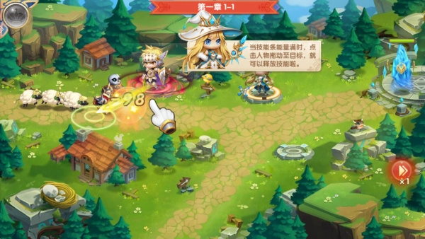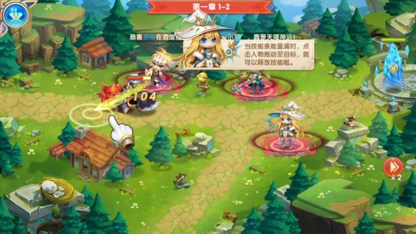 2、每个英雄都是战场上的核心力量,偶尔能召唤一些临时支援和防御建筑来辅助战斗;