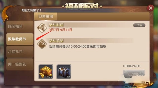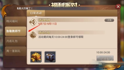 每星期一登陆游戏能够获得20元宝
