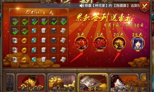 每个月月尾上线游戏能够获得100元宝