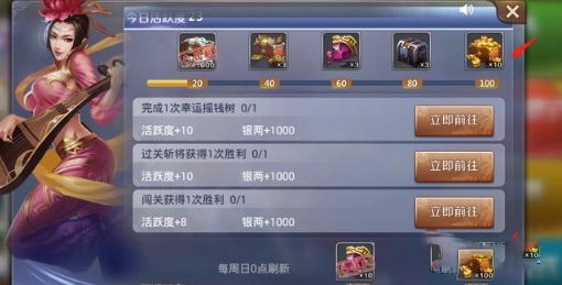 每日100活跃度=10元宝
