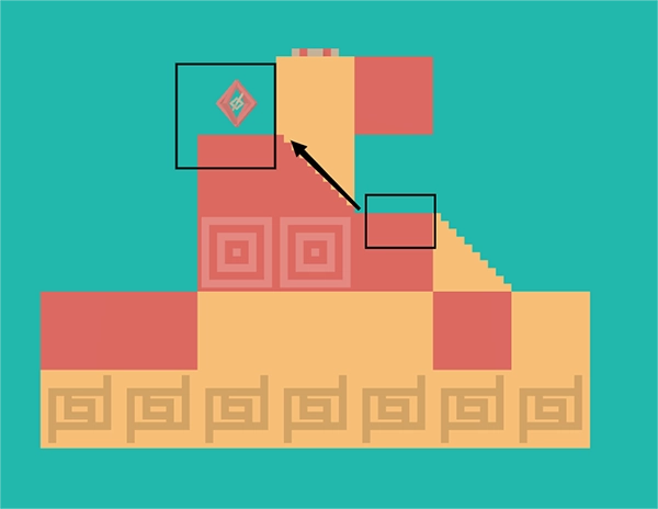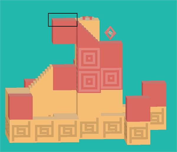 请将画面按照图示方向调整角度,然后切换到二维视图模式,接着把视角向上移动到更高一层的红色区域。