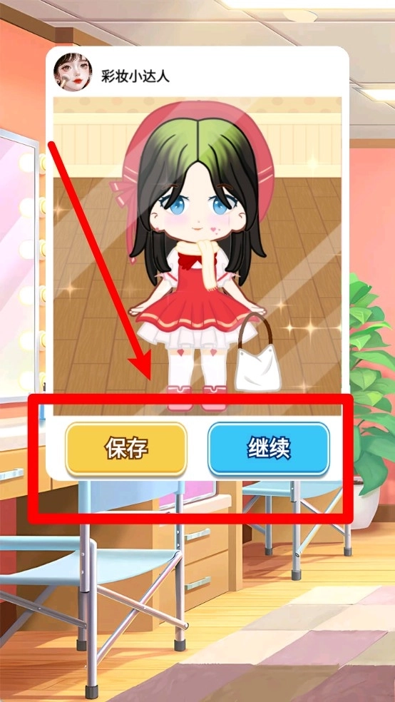 3.造型完成后可点击“保存”按钮将成果保留下来,也能选择“继续”挑战下一套主题造型任务。