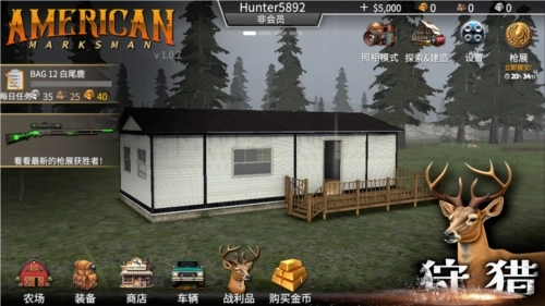 1、首先启动猎鹿人神枪手中文版,进入游戏界面后,点击右下角的【狩猎】按钮。