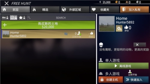 2、选择游戏模式,以及狩猎地图;