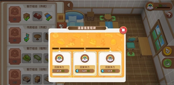 家具的作用可不止让小屋变得美观,它还能帮助我们恢复体力,效果还挺不错的呢!