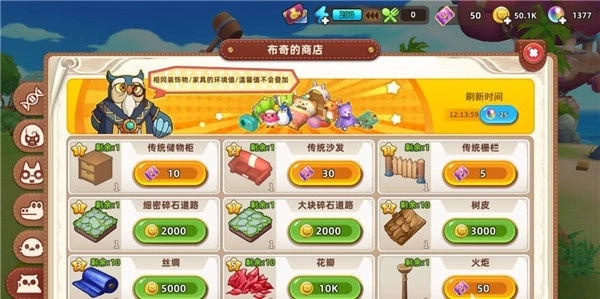 商店的买入功能虽初始关联布奇的商店(即村长所在处),但所有具备买入权限的NPC处均可激活全部商店的使用。商店内购买家具所需的并非金币,而是紫券。紫券的主要获取方式为完成配送站和蒸气船的订单:完成所有配送站订单可获得八张,完成五次蒸气船订单能得到五张;此外,每日任务中使用床也可领取两张。