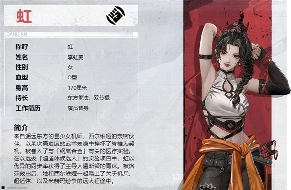 虹的天赋搭配多个被动技能,赋予了她极强的爆发输出、超高频率的连续行动能力、稳定的攻击命中率、灵活的位移手段、灵巧的闪避技巧,以及锁定敌人躯干的致命打击效果——当这些优势特性集中在一个角色身上时,她的强度自然不言而喻。再加上神经驱动系统对AP回复速度、伤害数值等关键属性的进一步强化,称她为“铁拳一姐”确实名副其实。
