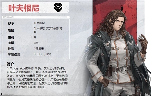 他是初始主角团成员之一,和迪拉卡、叶夫根尼比起来,各方面都显得比较中庸,没什么特别突出的地方。