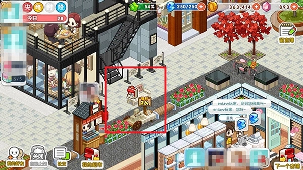 在自己家里设置完路边摊之后,到好友家里转一转,看看有没有空闲摊位把剩余的摊位开在好友家里,有红框中的图案的就是有空闲摊位,点击开店,之后等待好友接受就可以了。