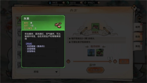 炼制炼体丸,需要消耗大量【灵草】,和少量的【妖丹】,以及少量的灵草伴生材料【朱果】、【天灵果】等。