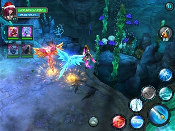 对付大刀鱼人时,可以用一次沉默技能控住它,然后让海洋小骚年全程普攻触发冰控,这样就能轻松解决掉它。等这个鱼人死后,另外两个拿叉子的小BOSS一出来并跑到场地边缘,输出1号和2号位置的玩家要立刻切到第二组武神,此时要全力保护汉克(这两个小BOSS的攻击能一下戳死三个汉克)。等这两个鱼人被解决,大BOSS就会正式登场。