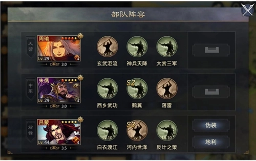 大营周瑜,全谋略加点,战法【神兵天降】【大赏三军】,高谋武将工具人携带神兵大赏给队伍加buff。