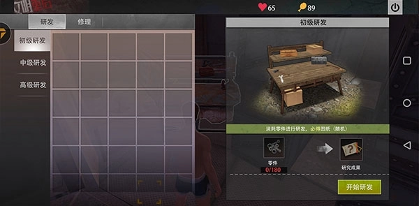 研发台更是缺一不可的存在,因为游戏战局中的物品或者装备都是分低、中、高等级的,我们如果想制作出来,研发台就必须有同时也要对应升不同的等级,否则我们即使有了物品或者装备也无法去研究配方制作出来。同时研发台也可以花一千零件来随机获取配方这就便捷了我们不用在游戏战局中去寻找获取物资来学习并制作。