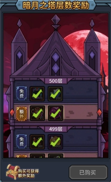 ③——暗月塔,这里可以购买到大量额外资源。200多枚橙色徽章建议优先兑换利刃2号攻速徽章与暴击4号暴击徽章,一枚极品徽章的价值等同于一本极书;剩余600多个宝石袋子,优先打造3个7级暴击宝石,其余则用来制作爆伤宝石。
