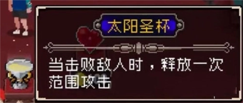 ②太阳圣杯:对敌人造成击杀后,会在敌人死亡的位置触发一次小范围爆炸,爆炸效果会有轻微延迟。