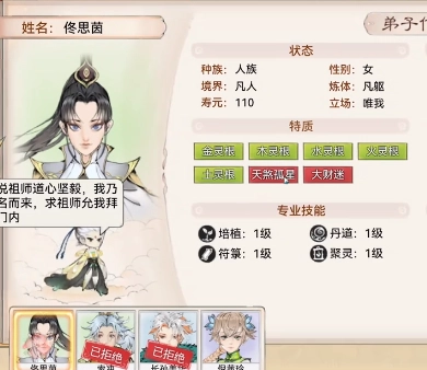 可以随机生成各式各样有趣的弟子角色,每个弟子都具备独特的天赋、技能与性格特点,玩家能够对这些弟子进行招募和培养。