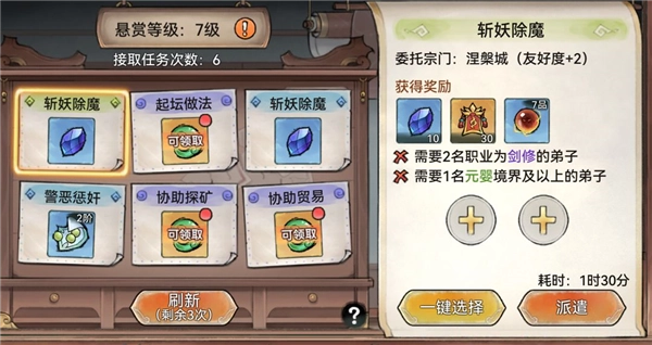 宗门建造悬赏台建筑后,每天可以做6个悬赏任务