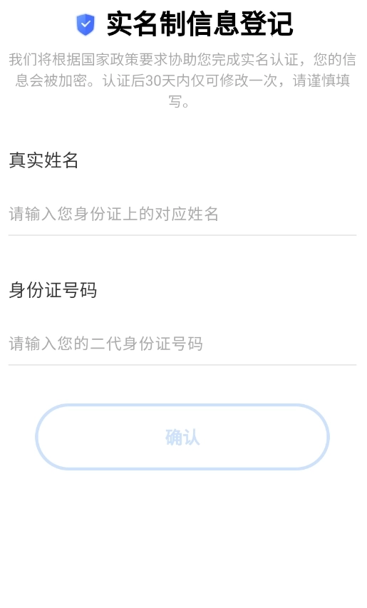 3.然后是实名认证,输入姓名和身份证号。