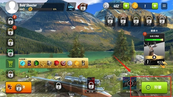 1、安装游戏后,直接进入游戏主页面,点击“狩猎”即可开始游戏。