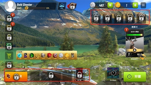 狩猎是每位猎人赖以生存的技能。不过在这个游戏里,你的目标难道仅仅是射杀动物吗?答案当然是否定的,每天都有各式各样的活动等着你去体验!你得充分发挥自己的追踪与瞄准本领,就如同置身于顶尖的射击狩猎赛事之中!你可以狩猎指定的猎物,比如鹿;也能前往特定的地点狩猎,像非洲、美国、俄罗斯等地都可供选择。完成这些目标,就能提升你的猎手等级!