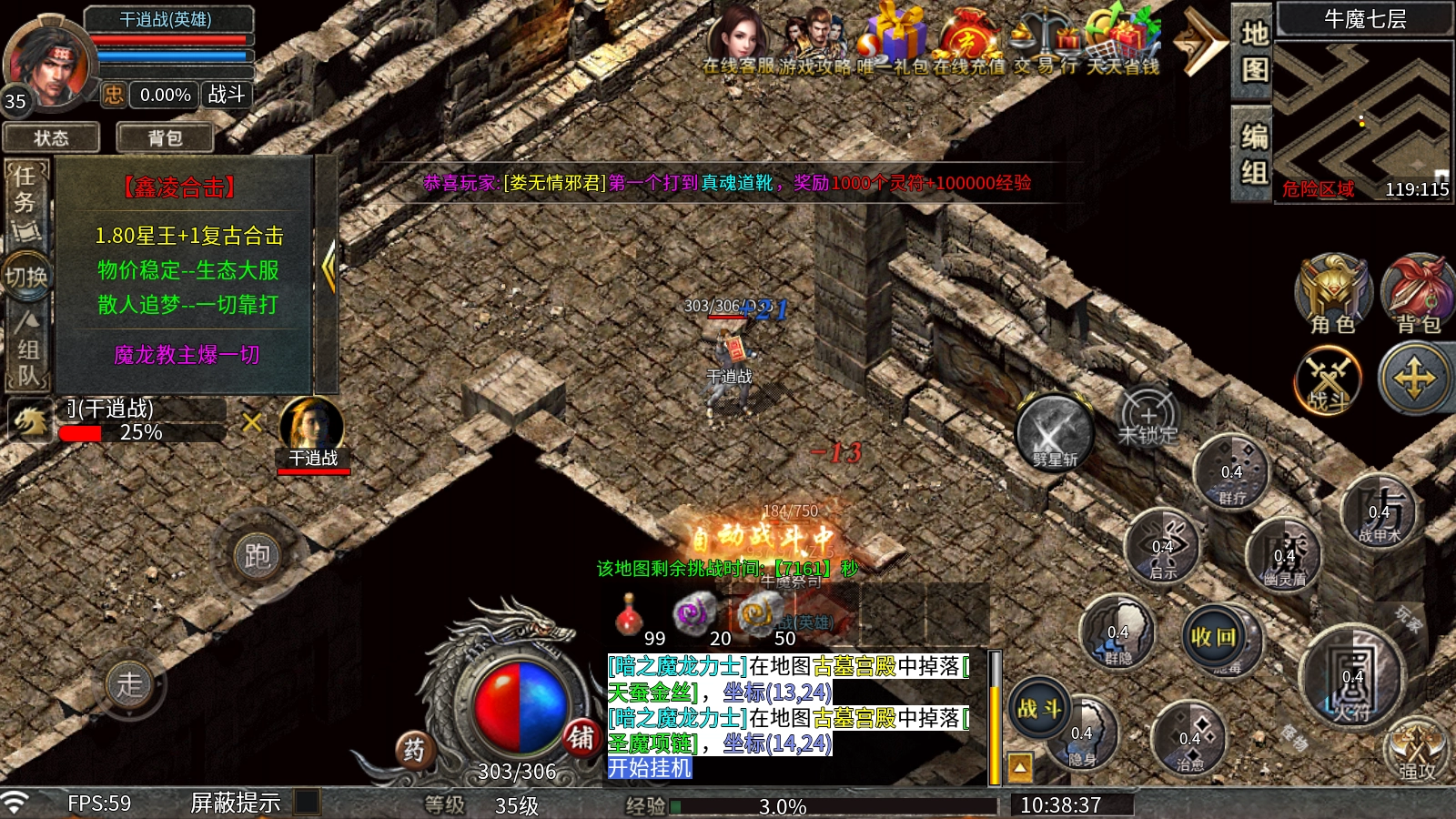 鑫凌合击,经典180三职业合击版本来袭!魔龙教主终极BOSS,全服顶级装备皆可掉落,更有超大游戏生态与自由交易系统,让你畅享无拘无束的冒险!本服所有材料与元宝均通过打怪产出,聚灵珠升级仅消耗纯元宝,散人玩家无需氪金也能轻松登顶满级!特色合击绝技自由组合,不同职业搭配各有独特定位,无论你偏好爆发输出还是团队辅助,都能获得酣畅淋漓的游戏体验!