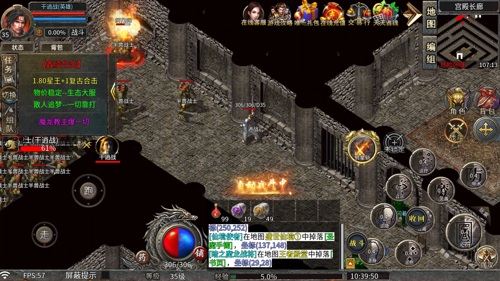 微氪五十米,打怪带红绿毒,自动捡物回收,轻松就能起步。